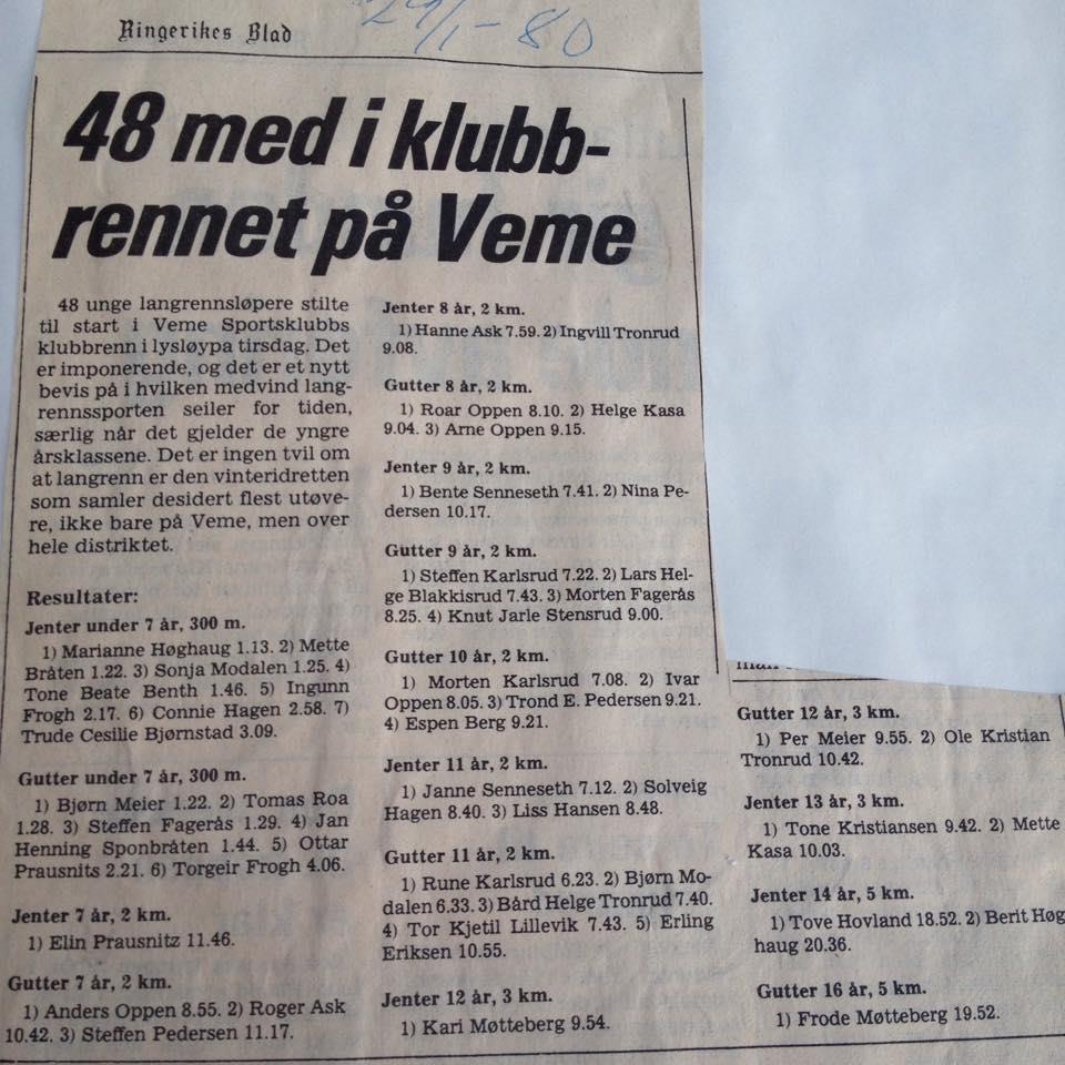 Akkurat når og hvordan folk på Veme begynte med organisert idrett, vet vi selvsagt ikke. Men det første omtalte organiserte skirenn på Ringerike foregikk på Nøkleby i Soknedalen 19. februar 1865. (Se omtale tidligere på Veme Sportsklubb sin Facebookside.)