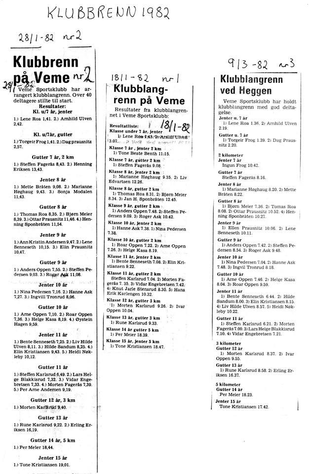og et par år senere i skibakken ved Vesle-Hovland. Videre ble det arrangert terrengløp og langrenn. På en fest på Dalheim i