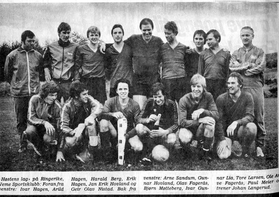 fotballag med spillere som Ivar Hagen, brødrene Harald og Robert Hansen, Sigurd Moen, Olav Sandum, Alf Haakonsen m.fl.